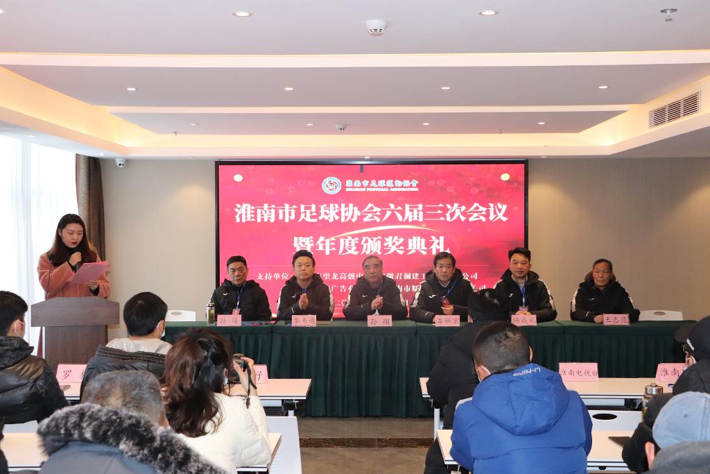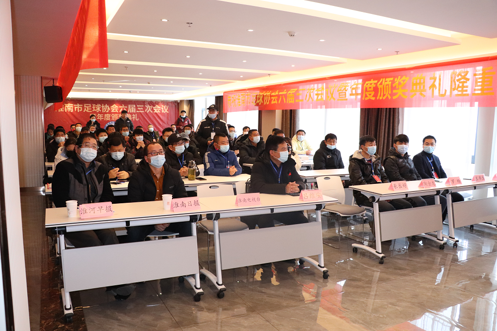 為大力推動(dòng)淮南足球事業(yè)全面邁上新臺(tái)階,1月12日上午,淮南市足球協(xié)會(huì)在山南新區(qū)錦江都城酒店召開(kāi)了淮南市足球協(xié)會(huì)六屆三次會(huì)議暨年度頒獎(jiǎng)典禮。各縣區(qū)教體局領(lǐng)導(dǎo)、負(fù)責(zé)相關(guān)教育體育群體工作的專(zhuān)職人員、淮南市大中小學(xué)和社會(huì)組織獲獎(jiǎng)球隊(duì)代表參加了此次會(huì)議。