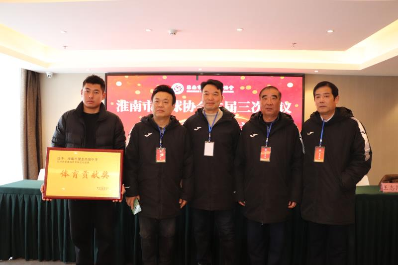 會(huì)上除表彰在足球教育普及推廣方面有突出貢獻(xiàn)的球隊(duì)、俱樂(lè)部及優(yōu)秀教練員之外,還特別為淮南市望龍高中頒發(fā)了“體育貢獻(xiàn)獎(jiǎng)”,以表彰我校對(duì)淮南市足球教育事業(yè)的支持和幫助。